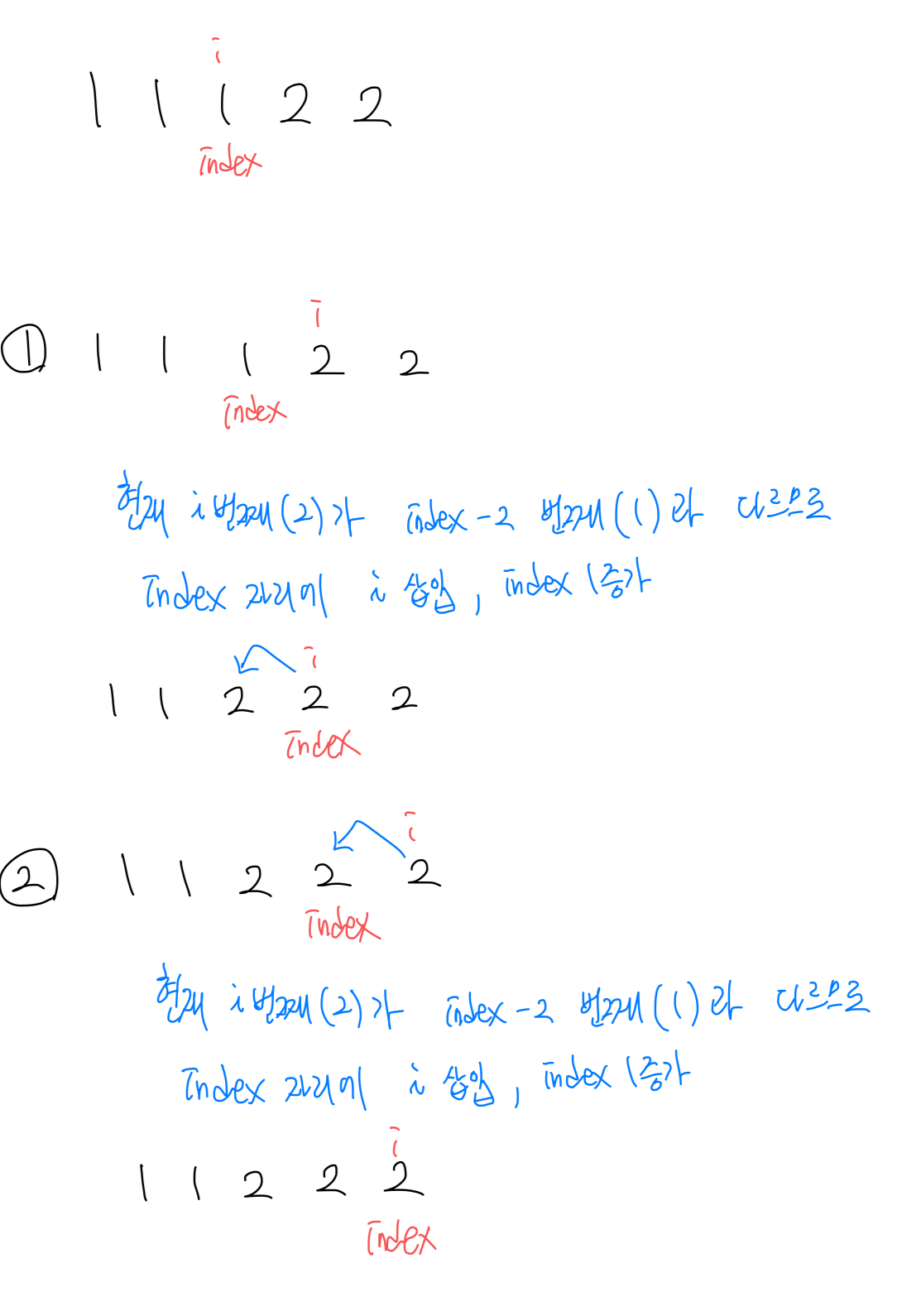 - 현재 요소(nums[i])가 nums[index - 2]와 같다면 3개 이상 존재하는 것